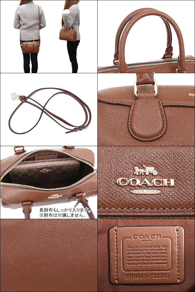 ●【コーチ COACH】 ラグジュアリー クロスグレーン レザー ベネット ミニ サッチェル 名称CRSGR MINI BNT STCHL 種類 バッグ/ショルダーバッグ サイズ 横幅:23cm 高さ:17cm マチ:12cm ハンドル:27cm ショルダー:118cm〜136cm 重さ:470g 仕様間口:ファスナー開閉 内部:ファスナーポケット×1 オープンポケット×1 ショルダー:取り外し可能、長さ調節可能 ●コーチの長財布が入ります 素材型押しレザー カラー サドル2 IMEB0 【金具の色】ライトゴールド 型番 F32202 付属品 なし コーチ COACHのバッグ(ショルダーバッグ)です。