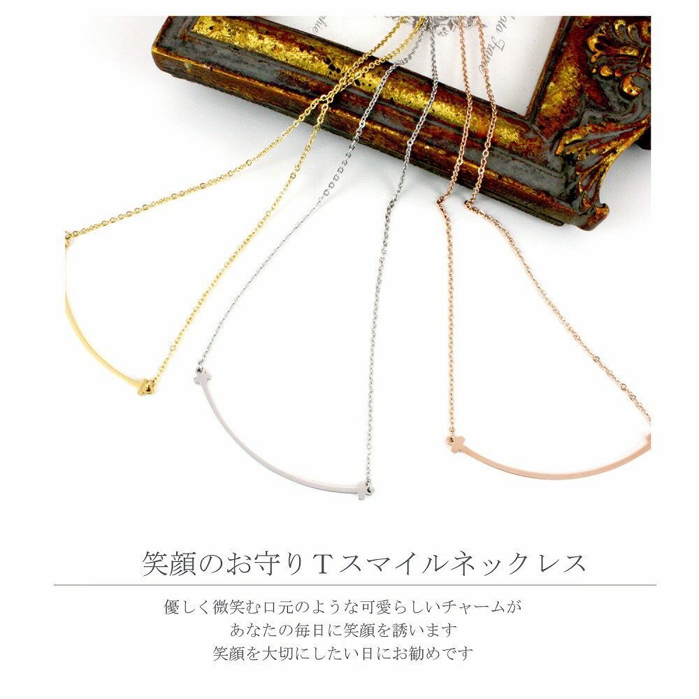 ステンレス ネックレス tスマイル ピンクゴールド ゴールド シルバー レディース 金属アレルギー アレルギー対応 シンプル スマイル 華奢 かわいい ステンレスネックレス おしゃれ オシャレ 上品 エレガント プレゼント 結婚式 パーティー スマイルネックレス ペンダント