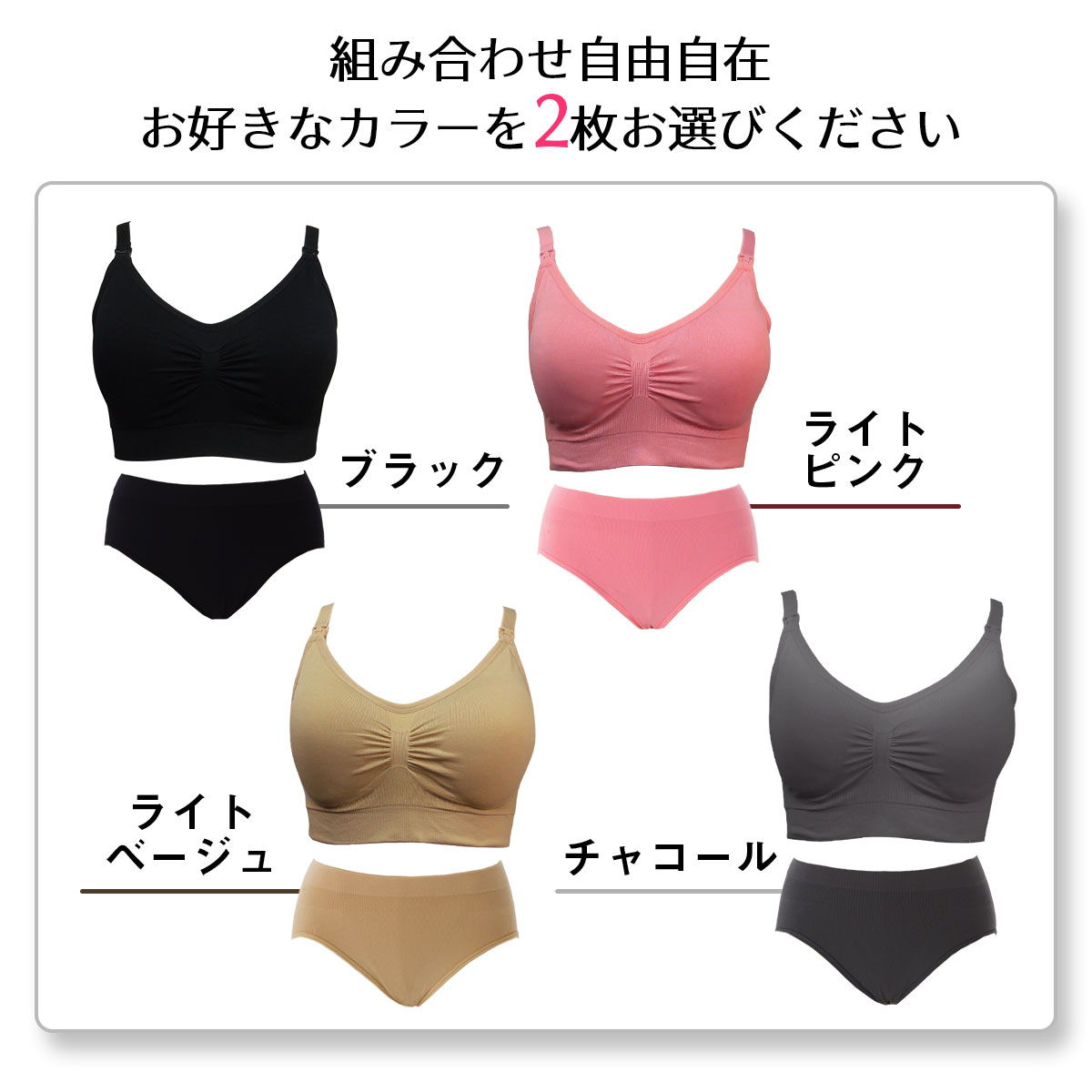 授乳ブラ 上下2組 マタニティブラ ノンワイヤー 前開き 【ラクブラ24 マタニティ&ショーツ2セット】大きいサイズ セット 授乳服 ノンワイヤー 出産準備 授乳用ブラ 下着 ブラジャー