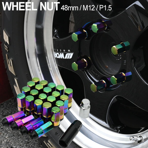 【商品説明】スチール&アルミ ナット ネジ部がスチール キャップ部がアルミのハイブリットホイールナット24本入りなので、様々な車種にお使いいただけます【仕様(スペック)】カラー:ネオクローム長さ:48mmテーパー角:60°【セット内容】M12xP1.5ナット:20本ロックナット:4本17HEX/19HEX 専用ソケット付き【適合車種】トヨタ ホンダ マツダ 三菱 ダイハツ レクサス ※ご注意※インパクトレンチの使用はお控えください。
